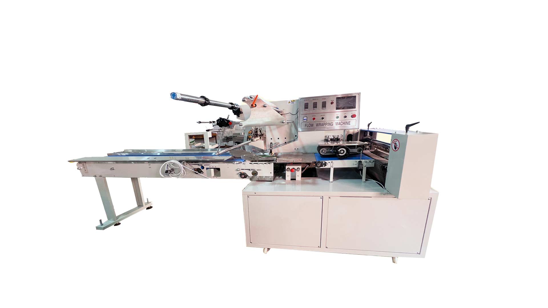 The automatic flow pack machine requires electrical and control systems to operate effectively.