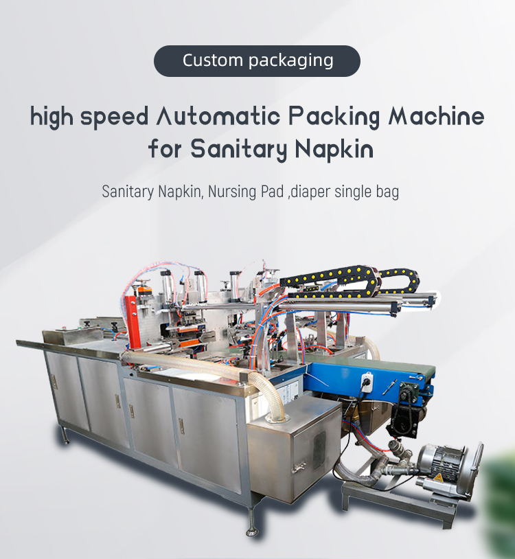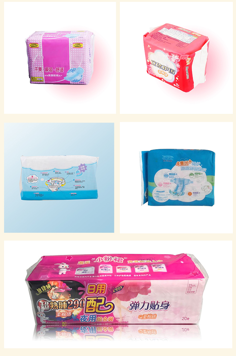 Serviettes hygiéniques, coussinets d'allaitement, fabricant et fournisseur de machines d'emballage à sac unique pour couches. Cette machine peut emballer 5 pièces/sac, 10 pièces/sac et autres. Bienvenue pour commander cette machine de haute qualité et de bonnes performances!